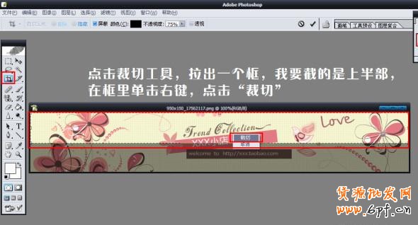 打開PS,調(diào)開做靜態(tài)店招,先把上半截裁切出來。
