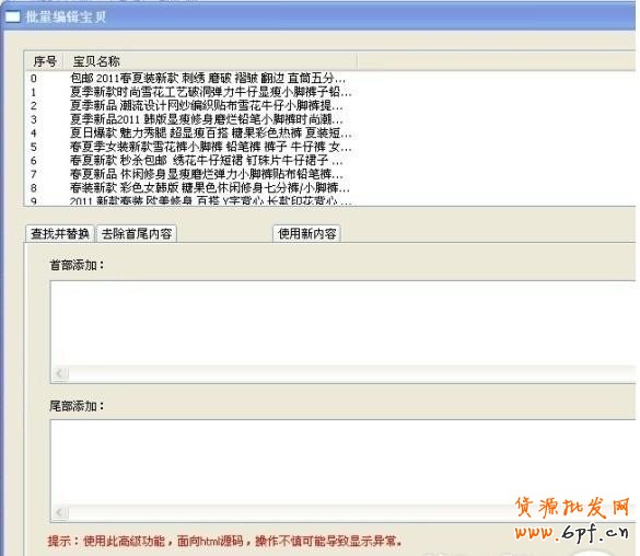 然后。全選——勾選——批量編輯——寶貝描述,選擇“首尾添加內(nèi)容”到這一步我們就要進(jìn)行編輯了,想要圖片出現(xiàn)在什么位置就在什么地方進(jìn)行編輯,可以添加在首部或尾部或者都添加。