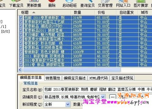 最后至關(guān)重要的一步,切記千萬千萬要重新上傳所有的寶貝,否則不會(huì)在店展中顯示的。好了關(guān)于如何在寶貝描述里批量添加圖片和超鏈接,我們就講到這里,順便打個(gè)小廣告,淘寶學(xué)堂網(wǎng)近期大量商業(yè)收費(fèi)淘寶店鋪模板免費(fèi)提供下載,大家可以到我們首頁看看。