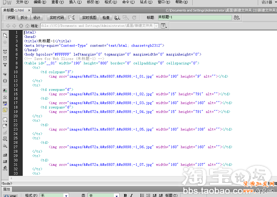 切片之后也用同樣的方法進(jìn)行保存,保存之后我們就可以把PS關(guān)閉了,下面我們要用的是DW軟件,這里很簡(jiǎn)單,我們只要用DW打開(kāi)剛剛切片后保存的HTML文件,我們剛剛切片的分成兩個(gè)文件保存的,我們可以同時(shí)打開(kāi)
