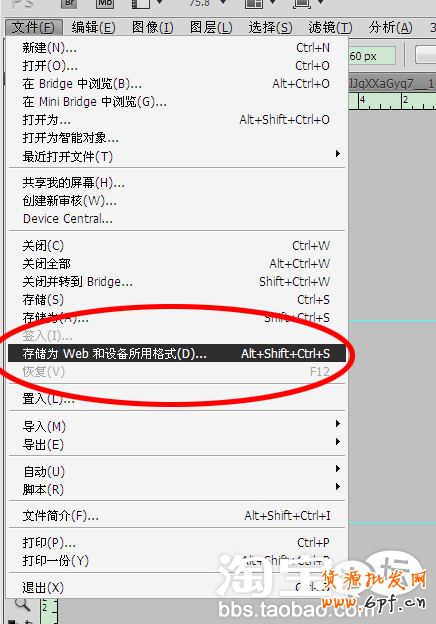 切片好之后我們就可以將它保存起來(lái),在這里我們要用文件→存儲(chǔ)為WEB或設(shè)備所用格式進(jìn)行保存,快捷鍵ctrl+ale+shift+s