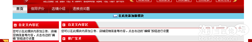 打開(kāi)之后,我們只要復(fù)制里面的代碼放入淘寶的自定義模塊中就可以了,我們?cè)谔詫毦庉嬳?yè)面左右各新建一個(gè)自定義模塊