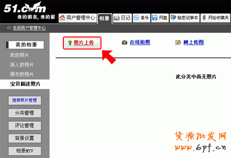 進入相冊后,我們先要建一個存放圖片的分類,以便以后方便管理,點擊左邊的“分類管理”鏈接。