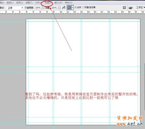 然后,在菜單視圖那里周出參考線。這個是為了制作出來的寶貝圖片的整齊性而做的。