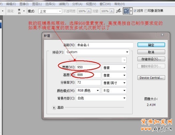 首先,打開軟件,新建空白文件,拓展版為950像素寬度,標準版為750像素寬度,具體高度根據(jù)自己的要求確定。