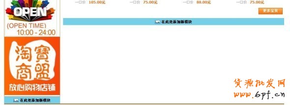 3、添加中間的基礎(chǔ)模塊(這個(gè)也是相當(dāng)作用的,扶植版就只有三個(gè)自動(dòng)推廣模塊的, 加入標(biāo)準(zhǔn)旺鋪后可以添加好多)首先跟添加左欄模塊一樣。點(diǎn)擊“在此處添加新模 塊”里: