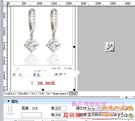 5、把之前做好的寶貝圖片傳上的網絡相冊地址復制一下,然后粘貼到下方中間的源文件(圖片地址1)的地方,圖片就會顯示出來,下面那個是填寫你寶貝購買的地址(超鏈接)