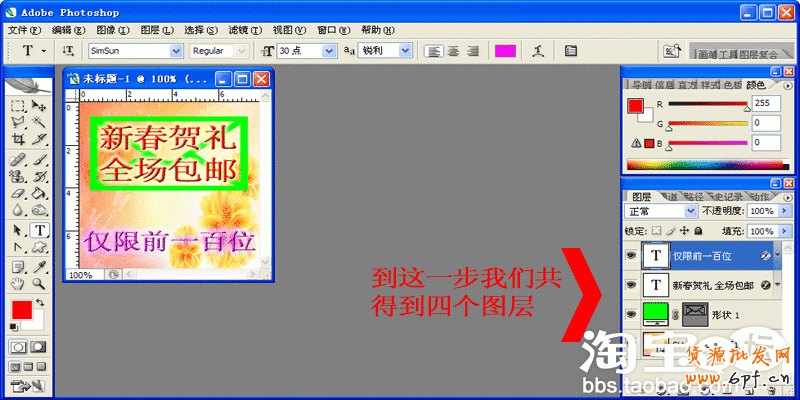 第三個(gè)步驟:加入文字如(新春賀禮 全場包郵)。