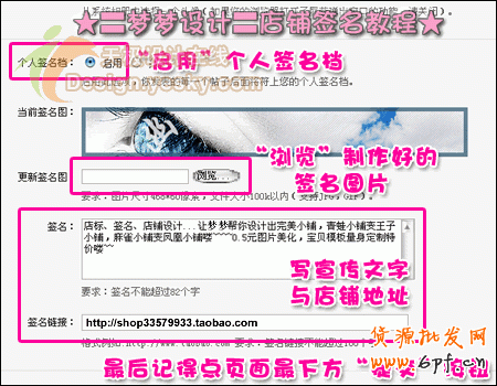 使用漂亮的簽名在網(wǎng)店社區(qū)的作用可不小,可以吸引買家點擊進入你的店鋪哦!