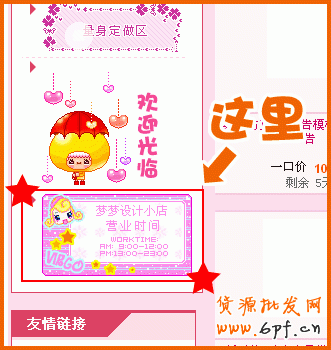 這些小掛件可以讓小店蓬蓽生輝,也可以把一些特價活動放在里面,掛件與浮動公告的使用的代碼相同。
