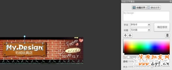 ⑴文字功能中有動畫和靜態(tài)兩種形式,動態(tài)的文字在顯示的時候可以根據(jù)你的選擇產(chǎn)生相應(yīng)的動態(tài)效果,靜態(tài)文字顧名思義不動的文字,這兩種文字形式都可以選擇字體模式以及其他的大小設(shè)置,大家可以根據(jù)自己的需要在店標(biāo)設(shè)置。下面的效果圖: