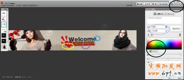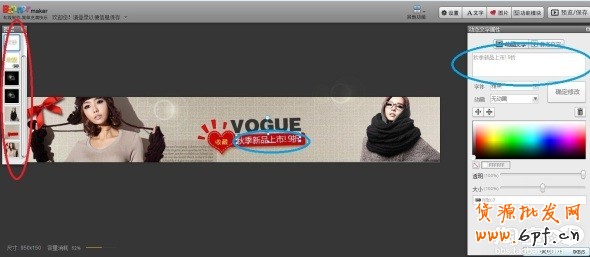 大家可以看到網站最上方廣告牌類目下面有各行各業(yè)的類目屬性可以供大家選擇,比如當前頁面的“秋季新品上市9折"大家如果喜歡的話可以直接點擊紅圈圈住的”開始制作",網頁就會轉入當前店招的修改選項!如下: