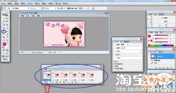 剩下的部分我們只需要利用adobe ImageReady 也就是photo shop 安裝時一起組合的軟件 來為這個動態(tài)圖片添加動態(tài)字體!