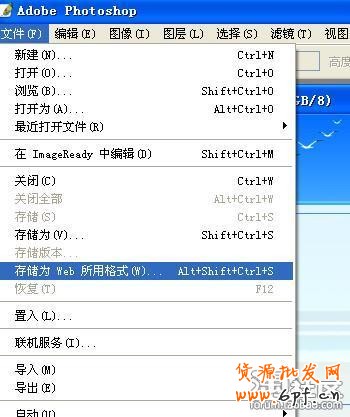 然后在PS的“菜單”選擇“存儲(chǔ)為web所用格式”