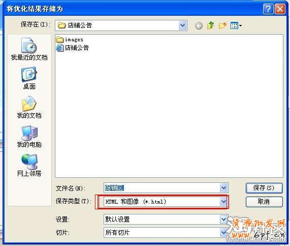 在該對(duì)話框中的“保存類型”選項(xiàng)中選擇“HTML和圖像(*.html)”,然后保存。