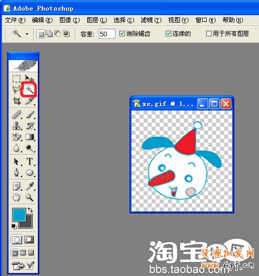 第二步:選取PS工具欄中的“魔棒工具”(上圖中的紅圈所示),在打開的圖片空白處點一下,然后“右擊”,在彈出的菜單中選擇“選擇反選”如下圖所示: