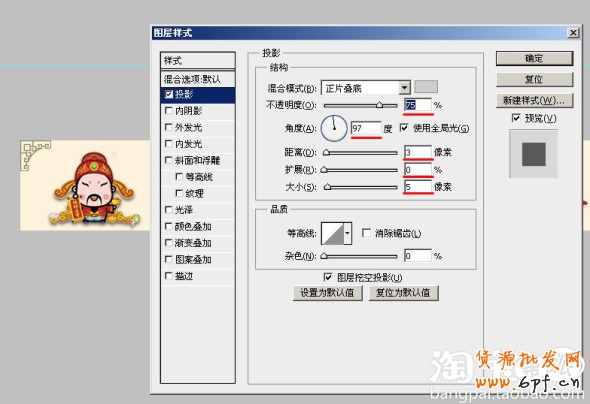 六、以此類推,另外一財神和文字都可以做圖層樣式: