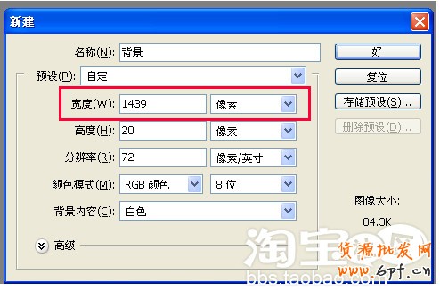 1:PS新建一張1439像素寬度的背景圖