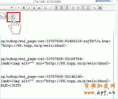 第七步:將右側(cè)模塊(促銷代碼)的代碼復制粘貼到編輯欄里,再次點擊 “編輯HTML源碼” 按鈕。