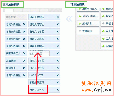 第三步:此時模塊操作區(qū)出現(xiàn)一個新的 “自定義內(nèi)容區(qū)”。按住鼠標左鍵可拖動“自定義內(nèi)容區(qū)”,移到相應的位置。