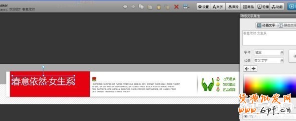 如上圖,然后點(diǎn)擊上排工具欄內(nèi)的文字,在選擇第二給箭頭指向的動(dòng)態(tài)文字,再在框內(nèi)輸入自己店鋪的標(biāo)題,下面有字體選擇和動(dòng)畫(huà)效果選擇,大家都可以選擇嘗試一下看!然后確定修改,