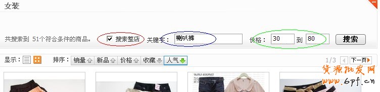 假設(shè)我們要設(shè)置的關(guān)鍵字為“喇叭褲”,在店鋪搜索中輸入“喇叭褲”