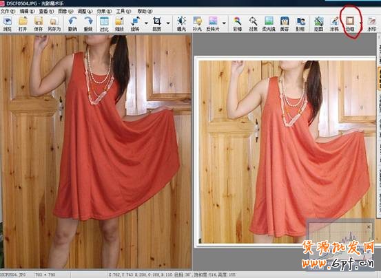 第六步,選擇縮放選項(xiàng),將照片調(diào)整為500*500的大小,以滿足淘寶圖片上傳時(shí)的大小限制。