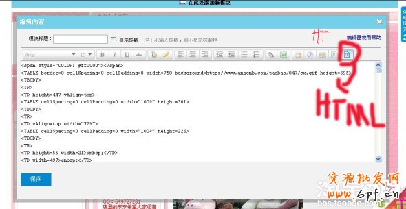 進(jìn)入店鋪裝修--自定義區(qū)--編輯 點(diǎn)擊 編輯HTLM代碼 將代碼一一粘貼在里面 再次點(diǎn)擊此按鈕 效果圖就出來了