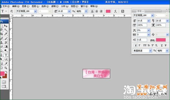 4. 接下來是文字制作,在【工具欄】點(diǎn)擊【橫排文字工具】,字體選擇【方正準(zhǔn)圓】,字體30點(diǎn),輸入“【臺灣·羅莎】美白專家”,移動(dòng)文字到恰當(dāng)合理位置。