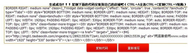 第一步,先在網(wǎng)上下載一個(gè)全屏海報(bào)制作工具。將制作好的全屏海報(bào)上傳到店鋪的圖片地址鏈接,或者淘寶圖片空間里后,在于全屏海報(bào)制作工具黏貼到海報(bào)的地址框里,注意:后面的海報(bào)圖片鏈接不要輸入內(nèi)容,點(diǎn)擊生成代碼,就可以看到全屏海報(bào)的代碼了。