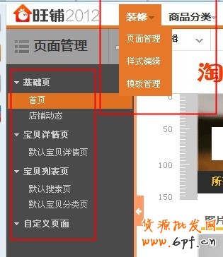 點(diǎn)擊”裝修“我們會(huì)看到頁(yè)面管理、樣式編輯、模板管理三個(gè)頁(yè)面,而在左側(cè)我們會(huì)看到基礎(chǔ)頁(yè)、寶貝詳情頁(yè)、寶貝列表頁(yè)面和自動(dòng)可以添加的頁(yè)面。以上6大板塊都是我們?cè)谘b修過(guò)程中比較常見(jiàn)和需要使用的頁(yè)面,下面我們就分別向大家展示一下。