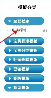 四、進入模板功能頁面后可以看到模板分類的界面,里面有全套模板 ,寶貝分類模板, 促銷模板等界面,我先選擇全套模板里面的招牌裝修看如何裝修店鋪招牌的!