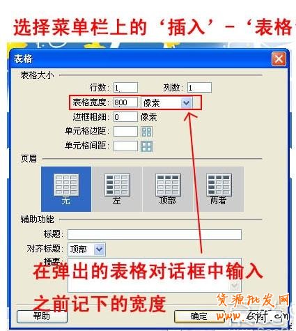 第五,輸入表格寬度,注意:請忽略下圖中“選擇菜單欄…”的說明,因為在上圖已經(jīng)操作有插入表格了