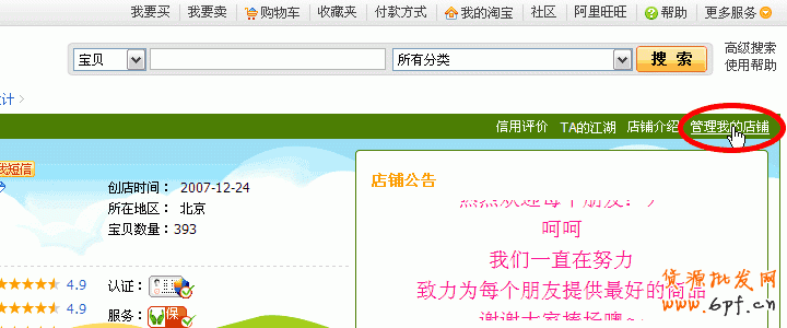 1、點(diǎn)擊右側(cè)管理我的店鋪;