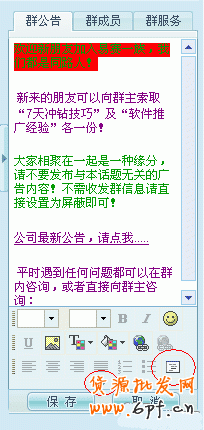 以代碼形式添加必須在代碼編輯頁面進行,為了簡單起見,我們以編輯群公告為例,假如要在以下橙色橢圓區(qū)域添加旺旺在線圖標,該如何添加代碼呢?