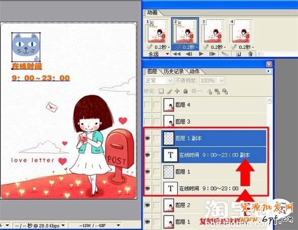 那么只要我們按順序修改每個圖層要顯示的內(nèi)容,就可以做出自己想要的動畫了。