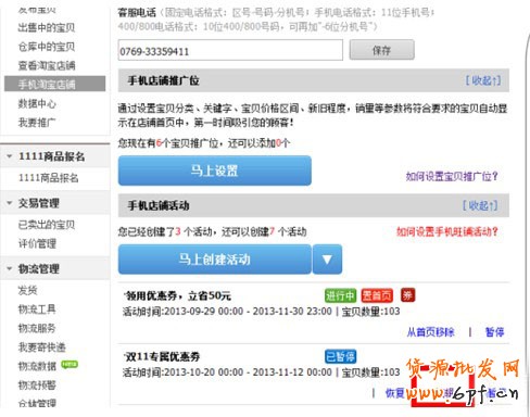 第三步:點擊店鋪后臺左側(cè)導(dǎo)航中的【手機淘寶店鋪】,再選擇【手機店鋪基礎(chǔ)功能設(shè)置】里面的【設(shè)置店鋪營銷活動】