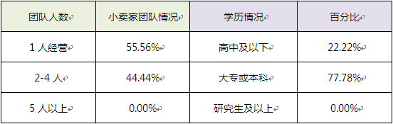 從小賣家的經(jīng)營團隊和學(xué)歷來看,這些店鋪都是淘寶“小而美”的一面。小賣家的多為一人經(jīng)營,或者夫妻合作,單槍匹馬闖江湖,困難可想而知!雖然都有大專或者本科學(xué)歷,有想法有學(xué)識,規(guī)模卻依然難以擴大。