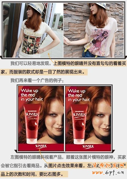 從以上兩個(gè)例子可以得出一個(gè)簡(jiǎn)單的結(jié)論:在主圖上,首先商品的款式一定要第一眼就展示在買(mǎi)家眼前,盡量少讓模特直勾勾的眼神占據(jù)買(mǎi)家的第一眼位置;其次商品的款式優(yōu)勢(shì)特點(diǎn)一定要在主圖上展現(xiàn)出來(lái)。