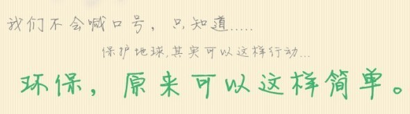 環(huán)保,我想大家完全可以想到這樣的方式,符合主流,這樣給大家的感覺是咱們正規(guī),雖然我們的顧客群不一定全部是環(huán)保主義者。但至少我們有口號,我們給顧客的影響力也會越來越深。