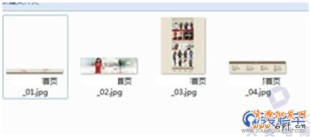 (1)我們可以將首頁(yè)劃分成:店招,海報(bào),產(chǎn)品寶貝,頁(yè)尾,四個(gè)部分。并通過PHOTOSHOP的切片工具劃分切片。我們可以使用輔助線進(jìn)行精準(zhǔn)的劃分。然后,通過“存儲(chǔ)為web所用格式”存儲(chǔ),我們就得到了四部分獨(dú)立起來的圖片。如下圖: