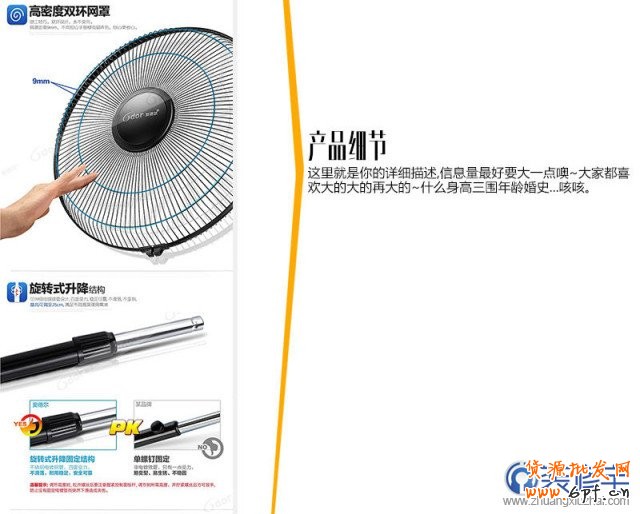 上圖,給大家的第一感覺是什么?清涼舒適科技感強烈~這就是風扇需要傳遞的第一信息.甭管你寶貝好不好價格有多便宜。你要傳遞的就是那種高大上還有契合你這個產(chǎn)品的氣質!