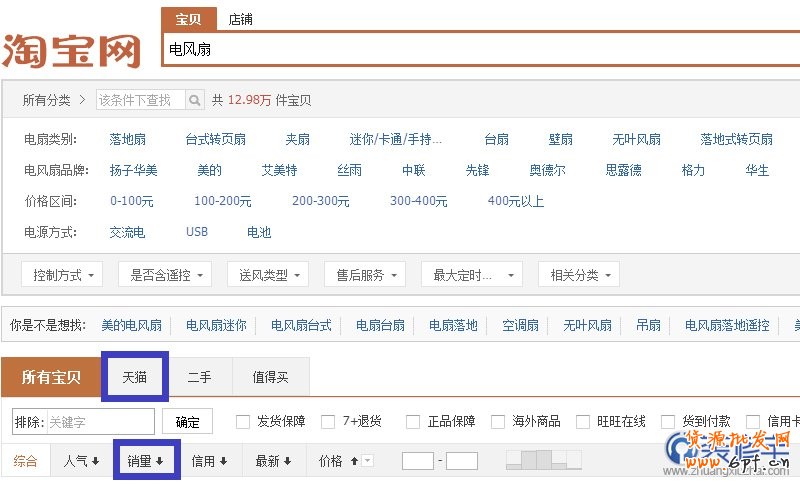 打開→三大不留點掏包點看木(淘寶網(wǎng)),關鍵字輸入你的產(chǎn)品標準名,比如:電風扇