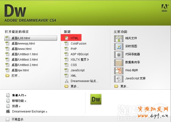 一.打開(kāi)軟件 首先打開(kāi)Adobe Dreamweaver CS4軟件,在初始頁(yè)面中可以從“文件”中新建,也可以直接點(diǎn)擊“HTML"