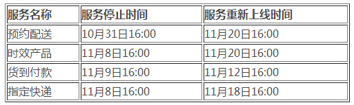 ■ 部分物流服務大促期間下線