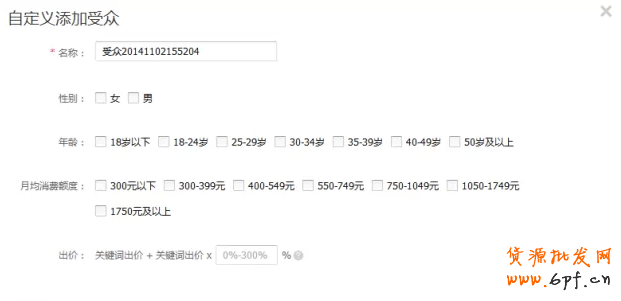 點擊自定義搜索人群,大家會看到5組數(shù)據(jù),記住,這里只能選擇5組數(shù)據(jù)。