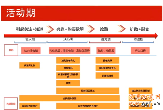 籌備期是供應(yīng)鏈貨品準備, 7月1日~10月1日籌備期,提前準備讓時間更從容。活動期是預(yù)熱準備,活動開始,10月1日~11月18日是活動期,找準關(guān)鍵,讓每個動作有意義。