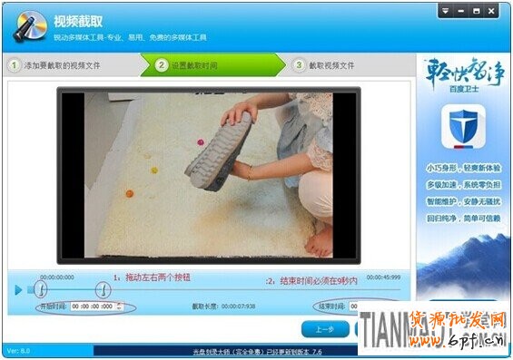 4、截取9秒鐘長度的視頻文件,點(diǎn)擊下一步,注意這里的結(jié)束時(shí)間必須為9秒!