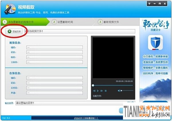 2、打開《視頻文件截取》的功能,點(diǎn)擊“添加文件”,添加好視頻文件后,點(diǎn)擊下一步