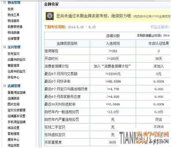 具體的指標,淘寶賣家還可以通過登錄賣家中心,在管理的頁面就可以看到自己那些指標合格,哪些不合格,如下圖: